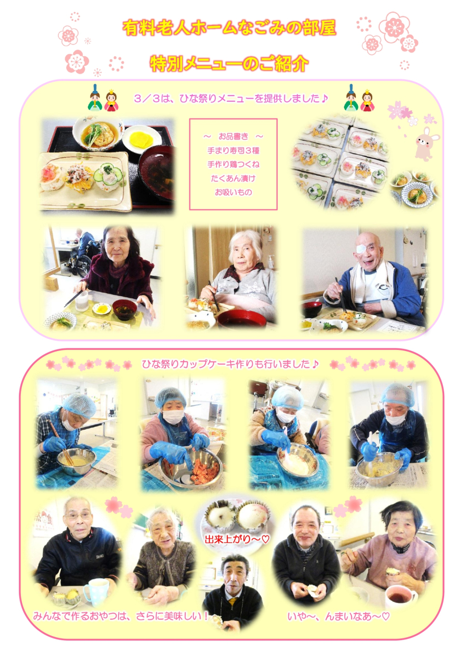 有料老人ホームなごみの部屋の特別メニューご紹介