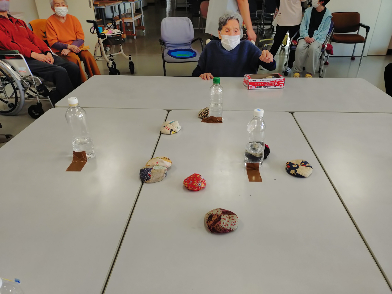 今回は、お手玉を投げて「鬼」を倒すレクリエーション活動をご紹介致します。